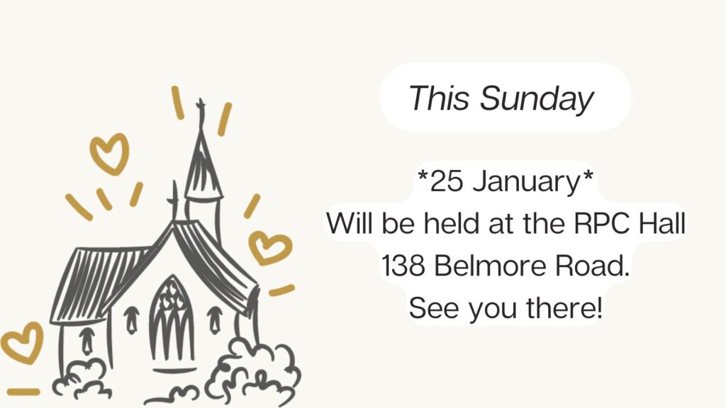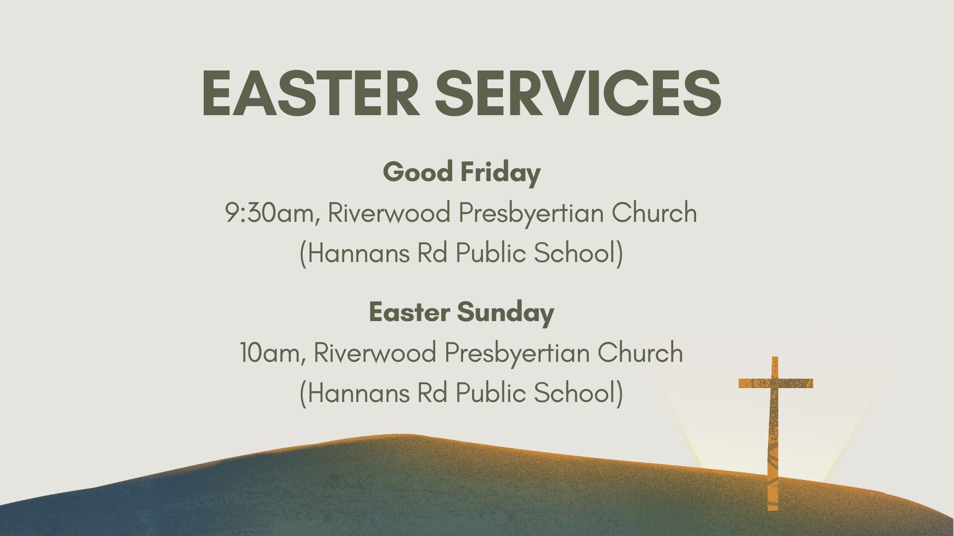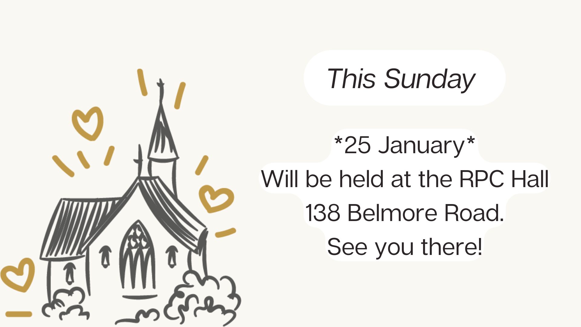 Sundays, 10am. Hannans Road Public School Hall, Riverwood. Parking available in the Teachers Carpark